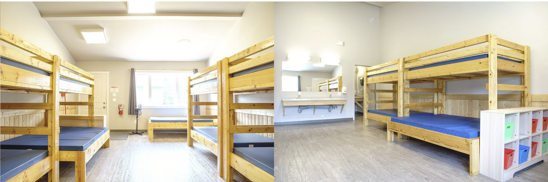 Campers will stay in shared cabins with up to 5 people per cabin. Each cabin includes bunk beds (you’re not required to take a top bunk unless you want to), a private full bathroom, and two additional sinks for getting ready. Cabins are easily accessible by vehicle, so you can drive up to unload your belongings before parking in the designated areas. There is also ample parking available on-site.
